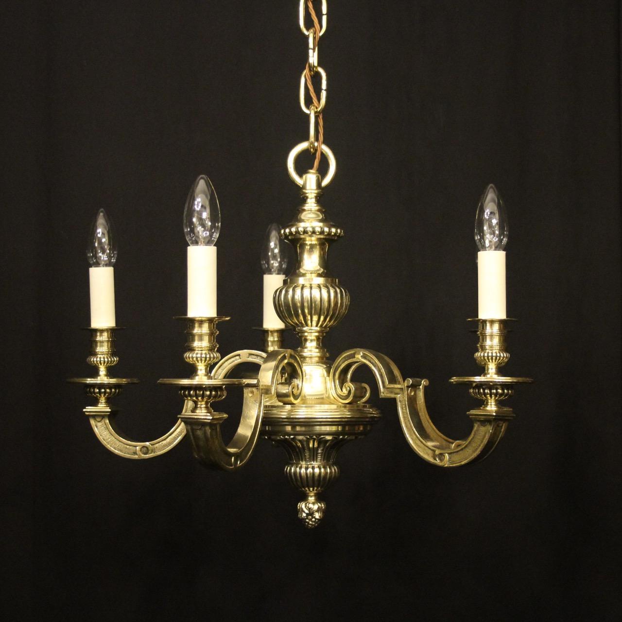 English Brass 5 Light Antique Chandelier