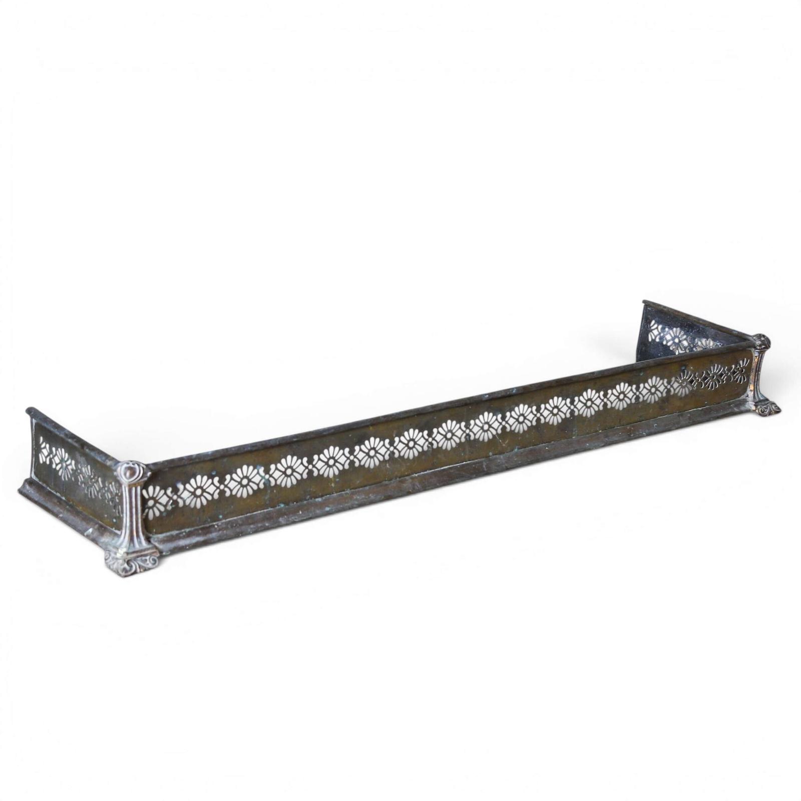 English Brass & Steel Art Nouveau Fireplace Fender, Wonderfully Patinated, c.1890