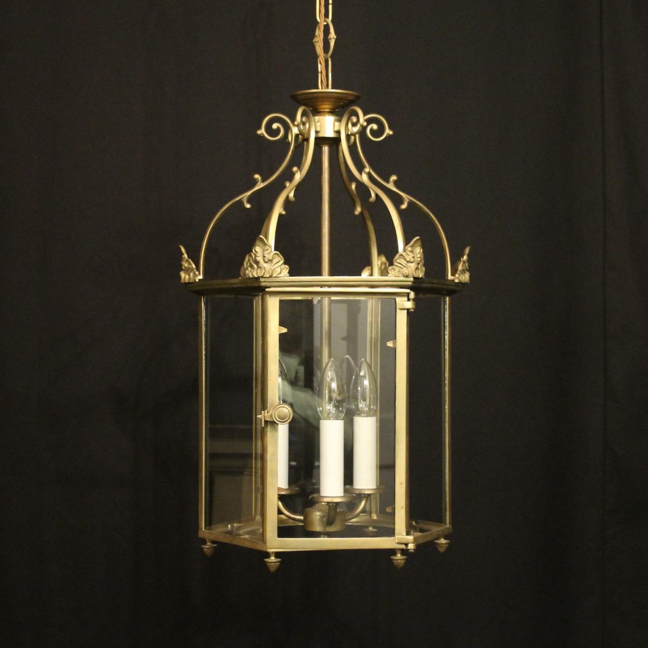 English Brass Triple Light Hexagonal Hall Lantern