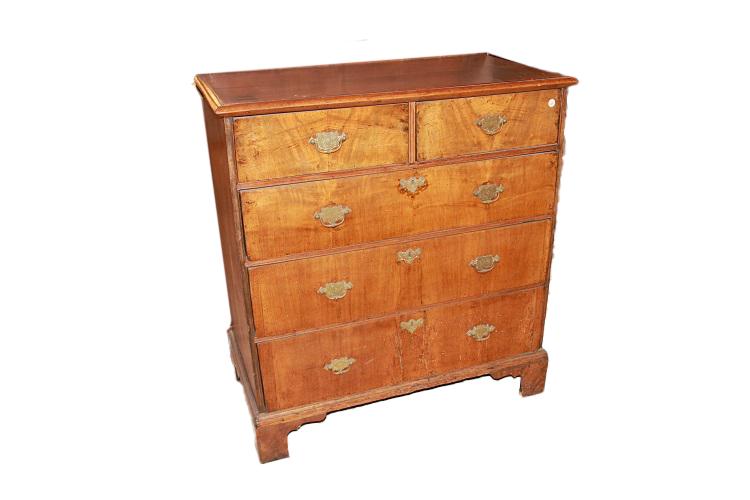 English Chest of Drawers from the 1700s, Queen Anne Style, in Walnut Wood