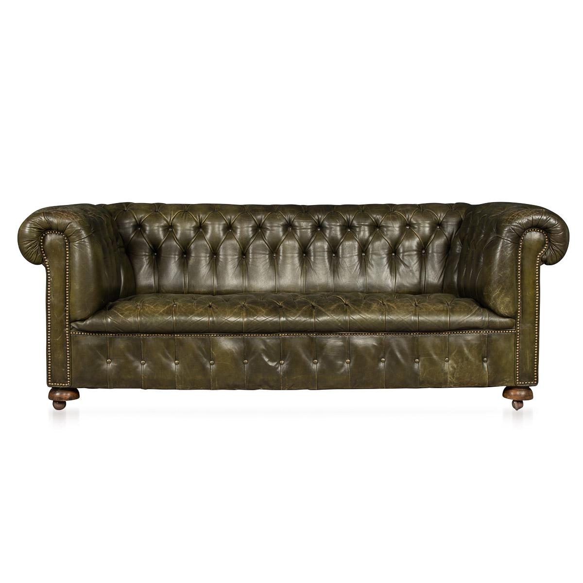 English Chesterfield Leather Sofa with Button Down Seats c.1960