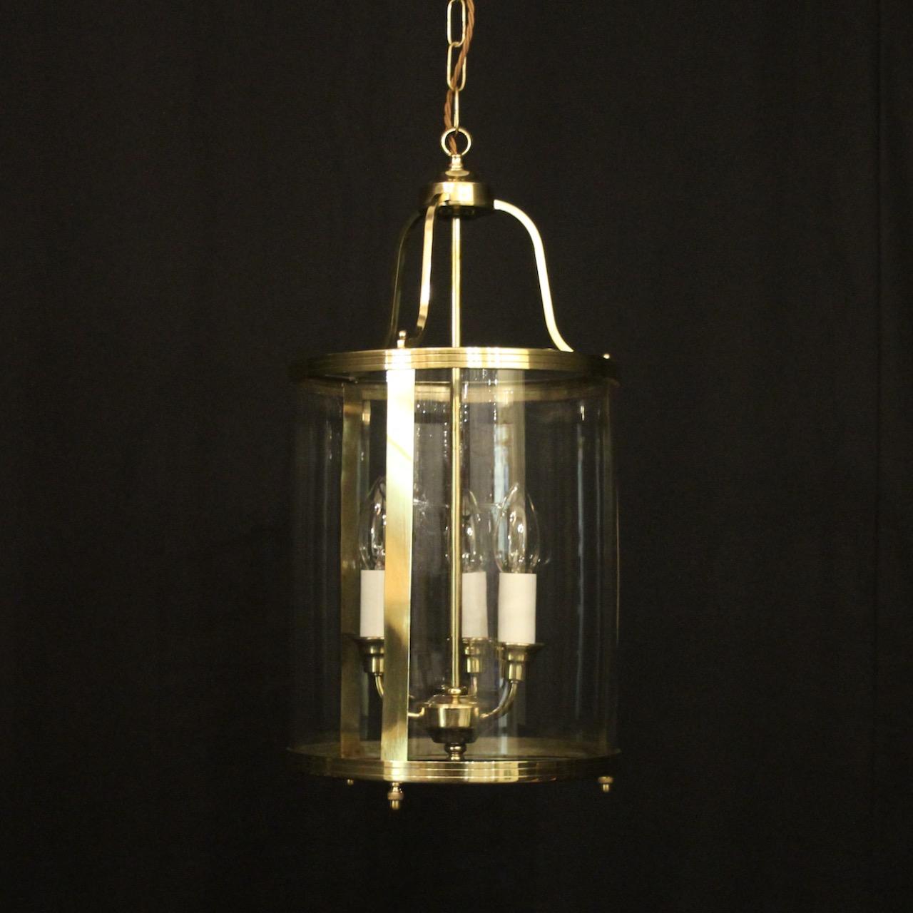 English Convex Brass Triple Light Hall Lantern
