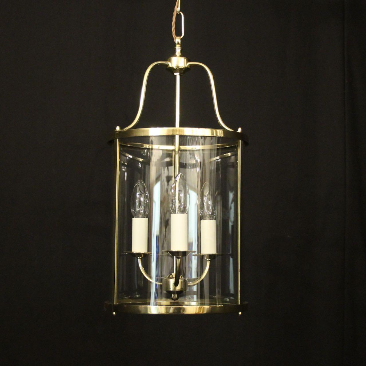 English Convex Brass Triple Light Hall Lantern