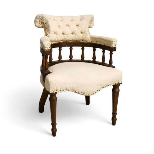 English Deep Buttoned Scroll Back Captain's Chair Circa 1920s