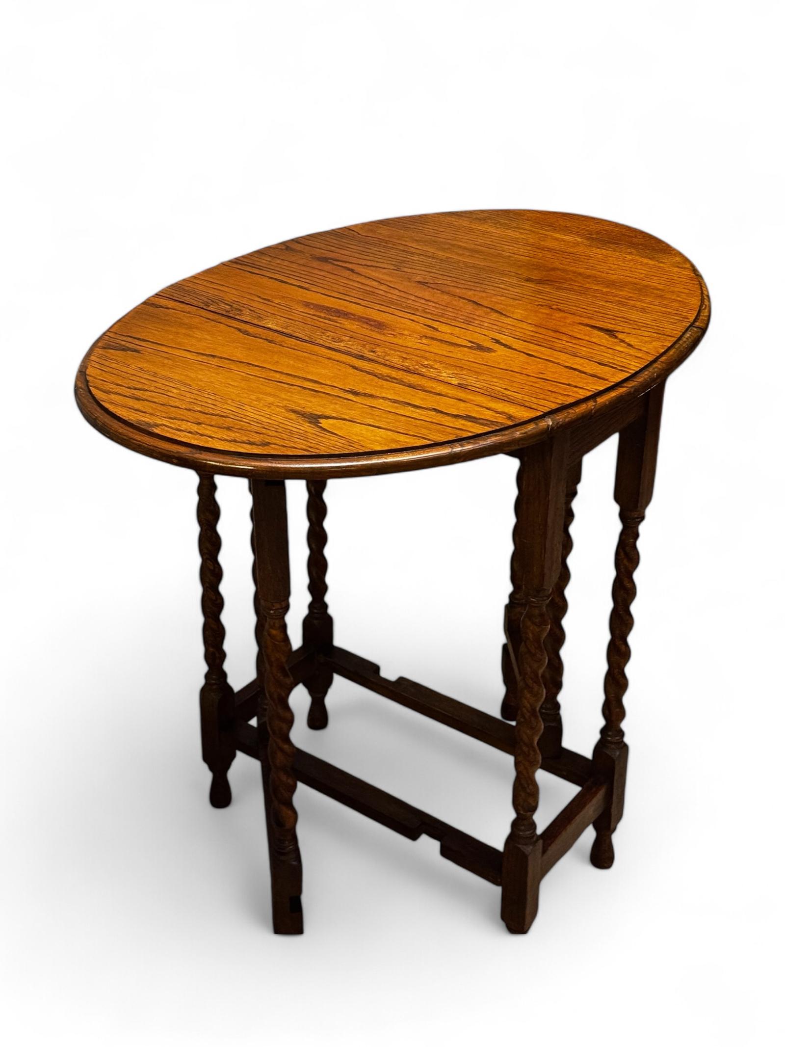 English Drop Leaf Oak Table / Gateleg Barley Twist / 1910s-1930s