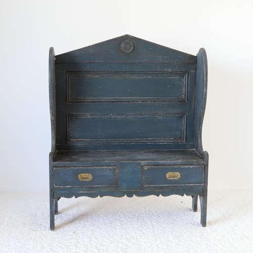 English Edwardian Period Painted Pine Settle with 2 Drawers