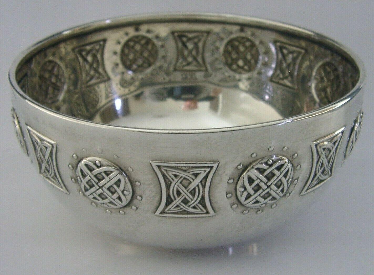 English Edwardian Sterling Silver Celtic Bowl 1908 Antique