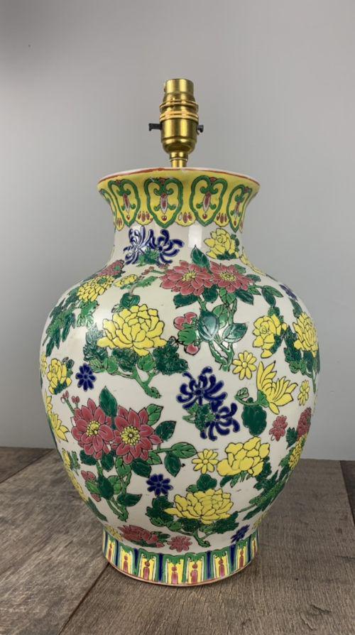 English Floral Vase Table Lamp, Rewired & Pat Tested c.1900