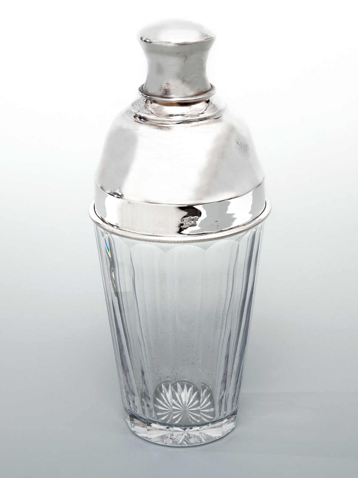 English Glass & Silver Plated Three Section Cocktail Shaker