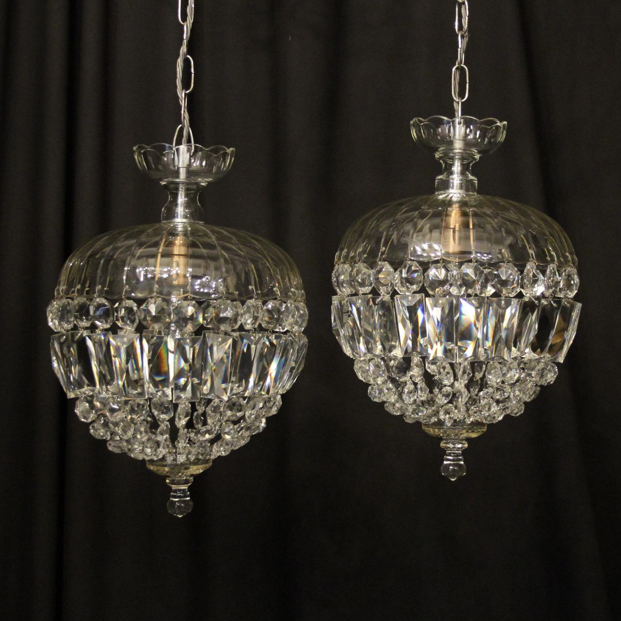 English Pair of Antique Glass Bag Chandeliers
