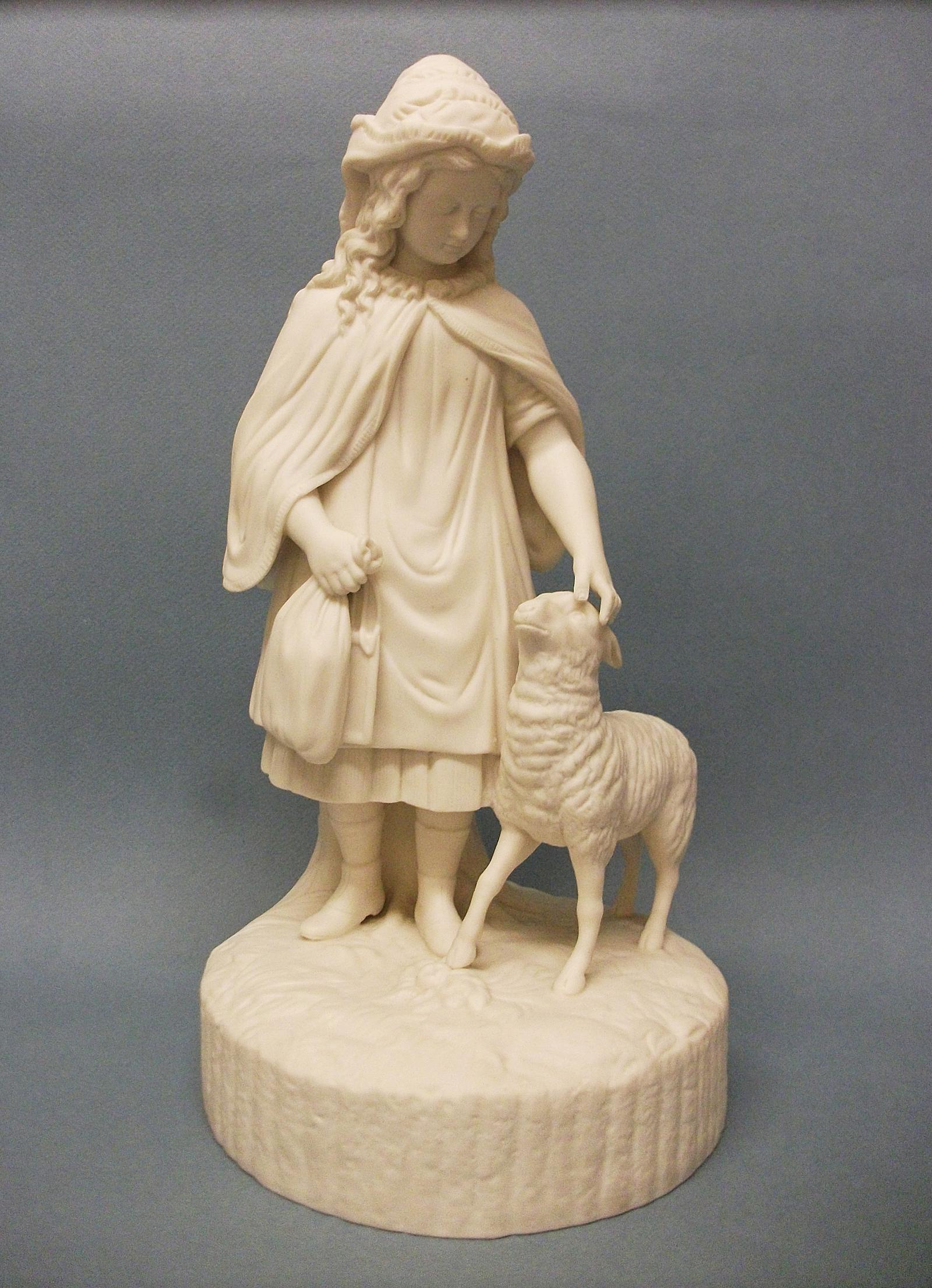 English Parian Ware Figure of a Girl & Sheep c.1860