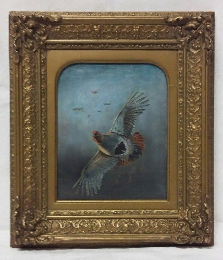 'English Partridge in Flight' a Lovely 19th Century Oil On Canvas Painting C.1880