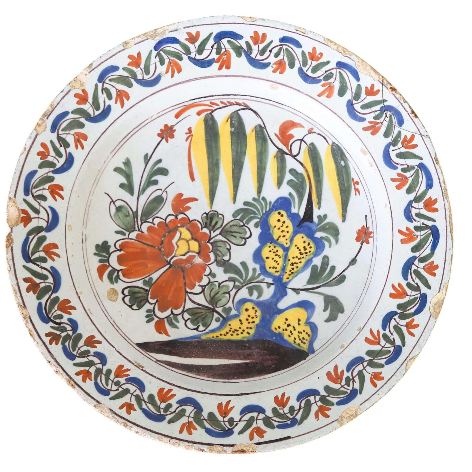 • English polychrome Delftware charger