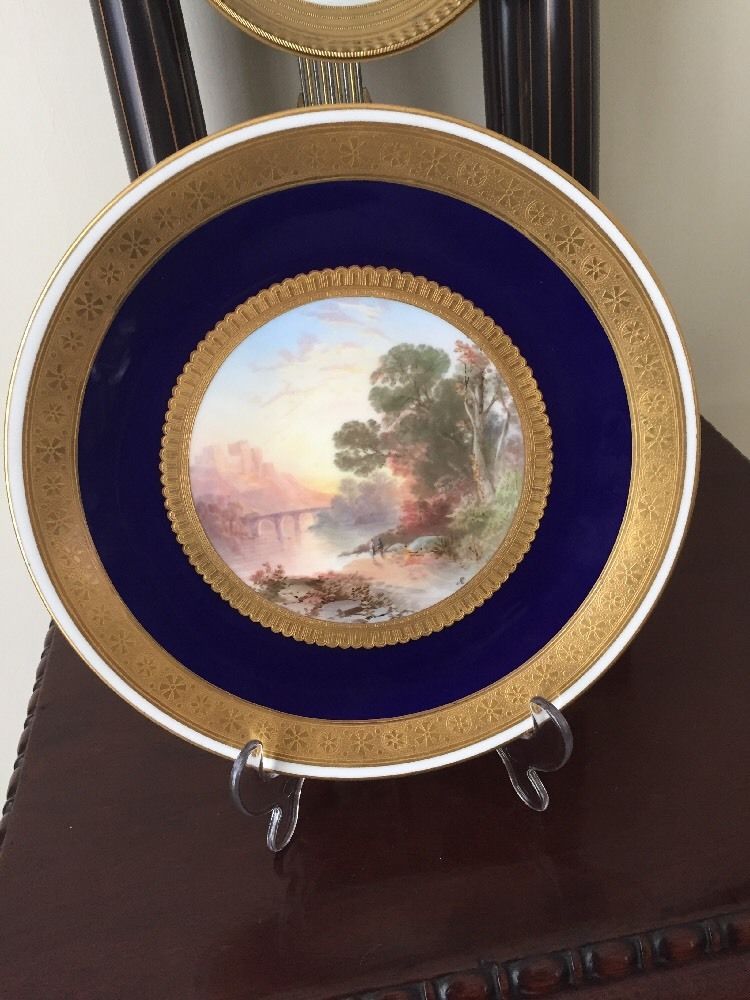 English Porcelain Cabinet Plate From Minton; Handpainted Landscape by John Eyre