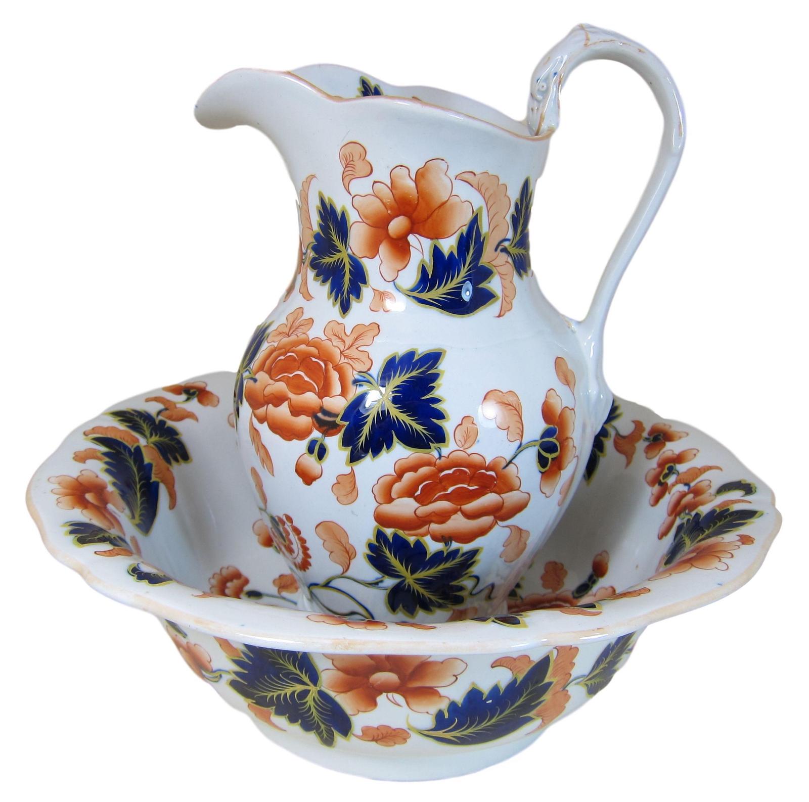 English - Possibly Hicks & Meigh Stone China Imari Jug & Bowl