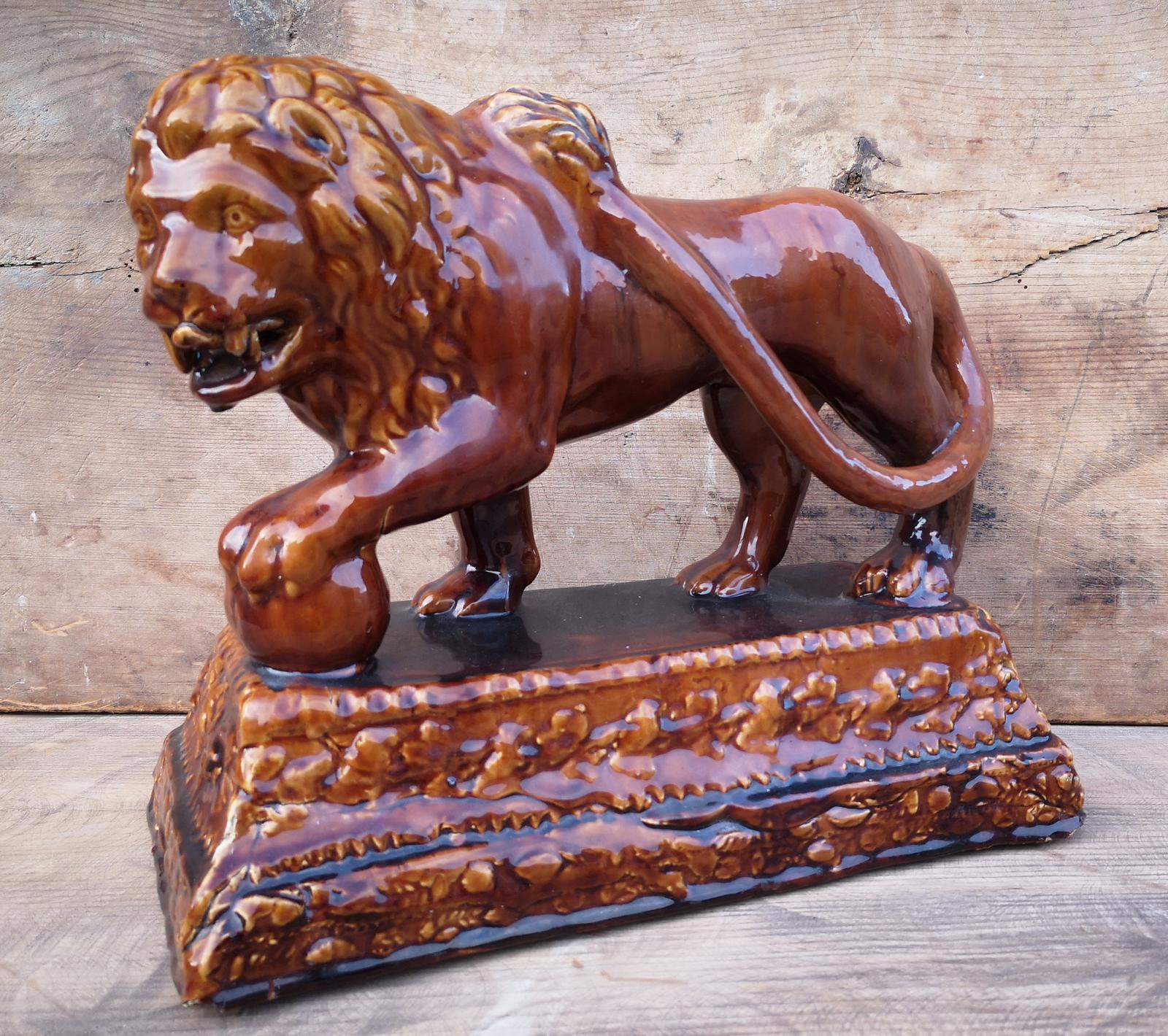 English Pottery Treacle Glazed Lion on Plinth Base (1 of 9)