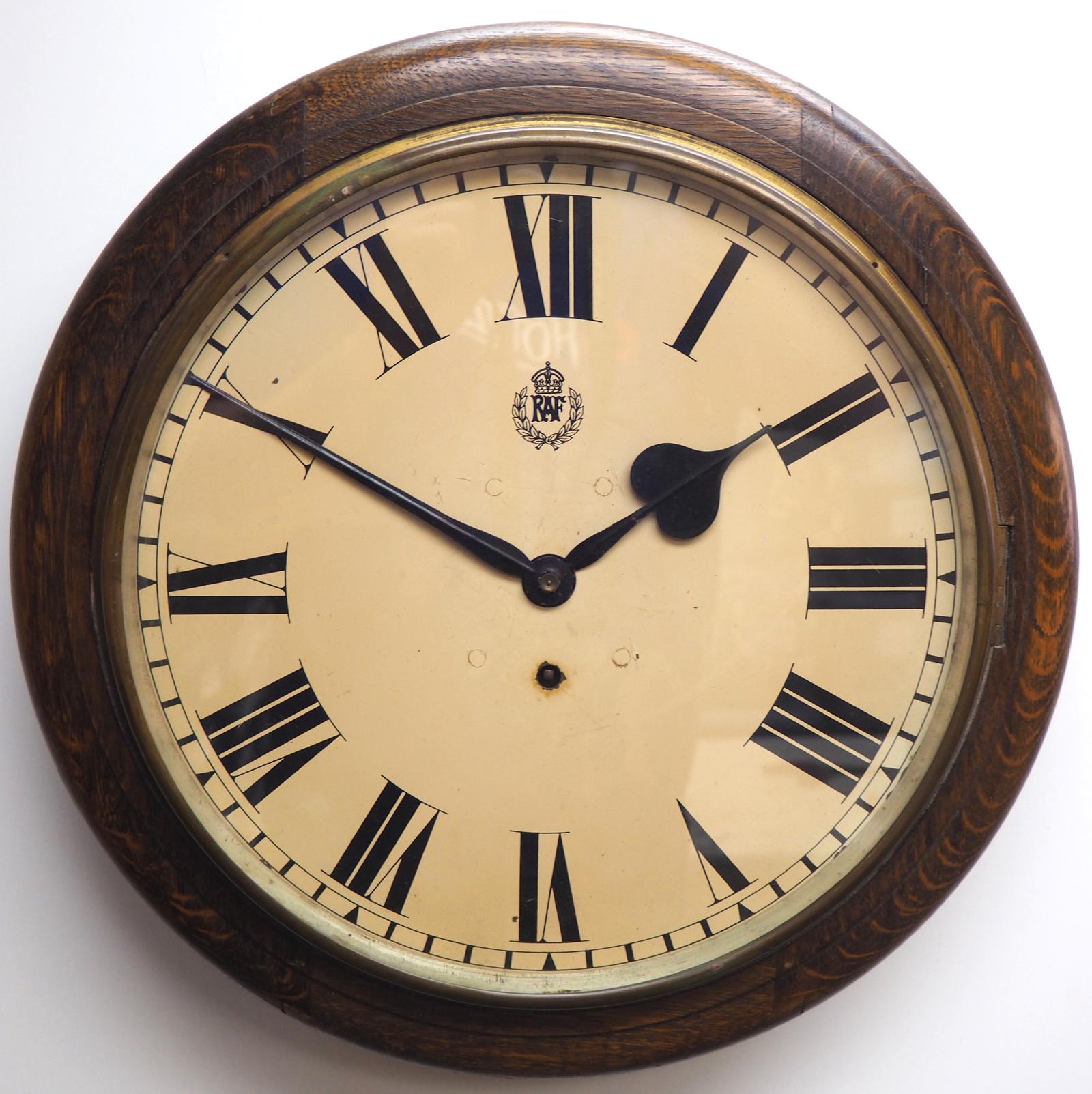 English RAF 18 Inch Dial Wall Clock Oak Military Mess Clock Fusee Dial Wall Clock