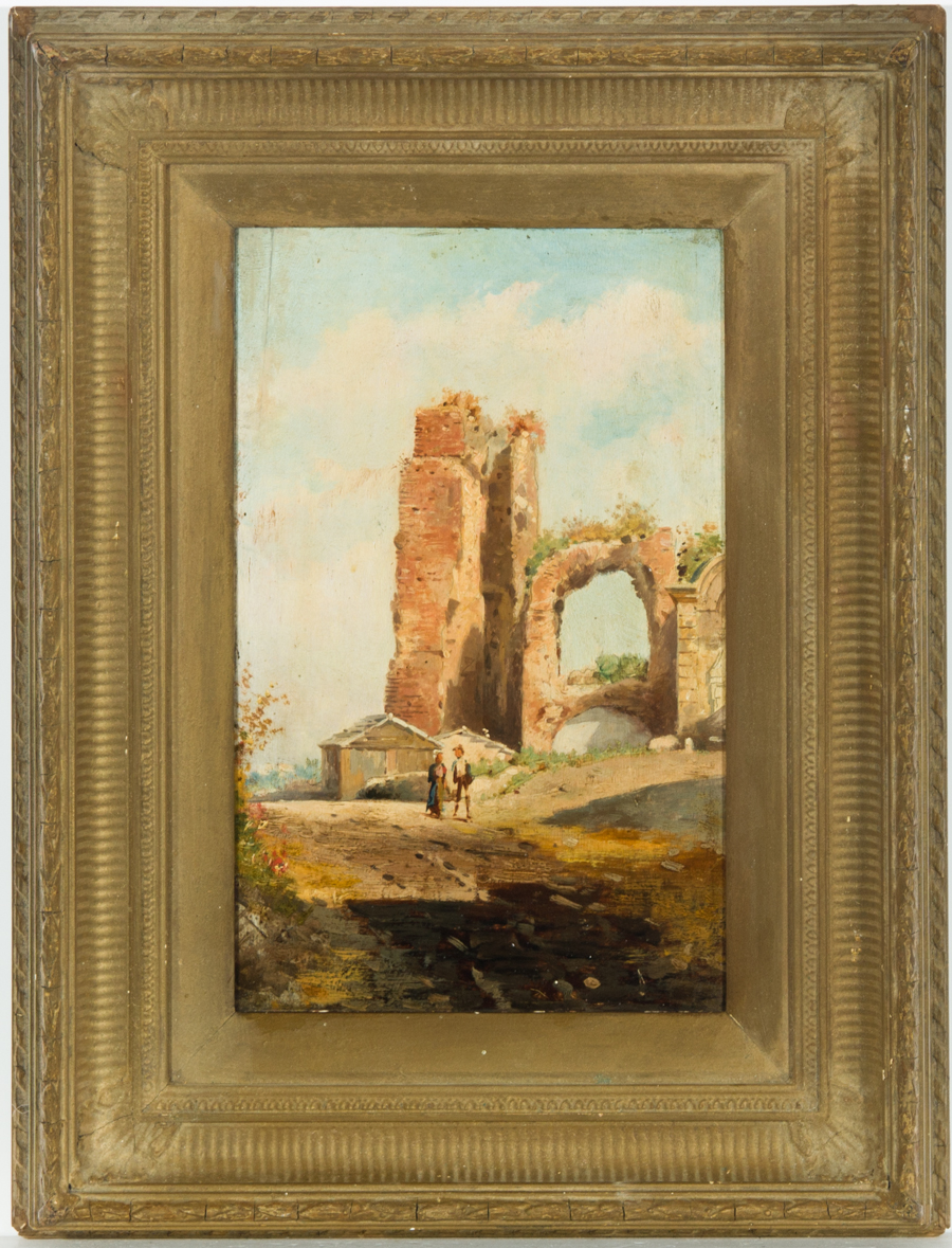 English School 19th Century Oil - Classical Ruin Landscape with Figures