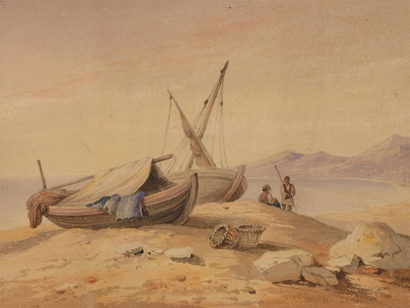 English School 19th Century Watercolour - Fishing Boats on a Beach