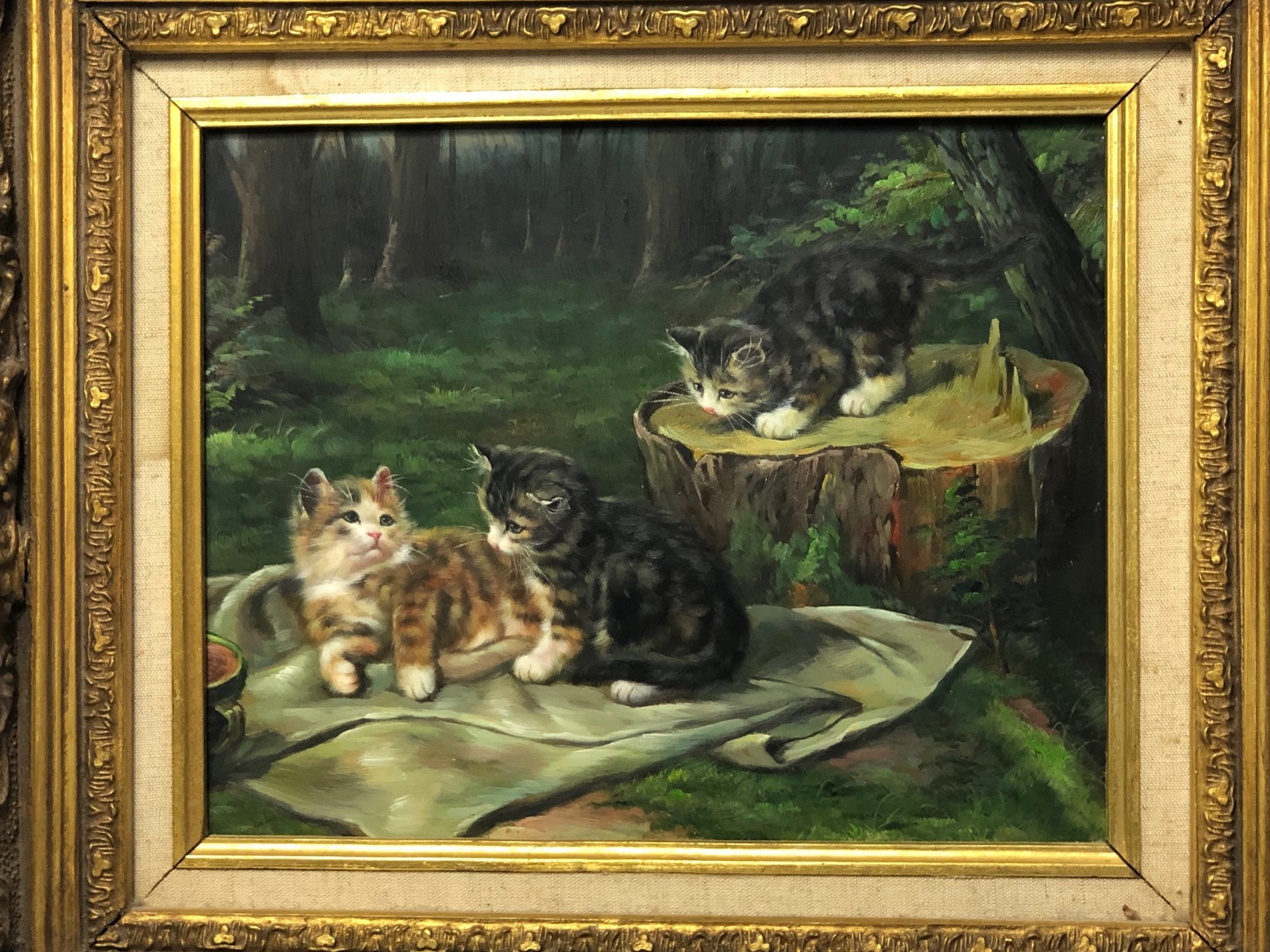 English School Victorian 19th Century Oil Painting 3 Kittens At Play Portrait After Henriëtte Ronner-Knip