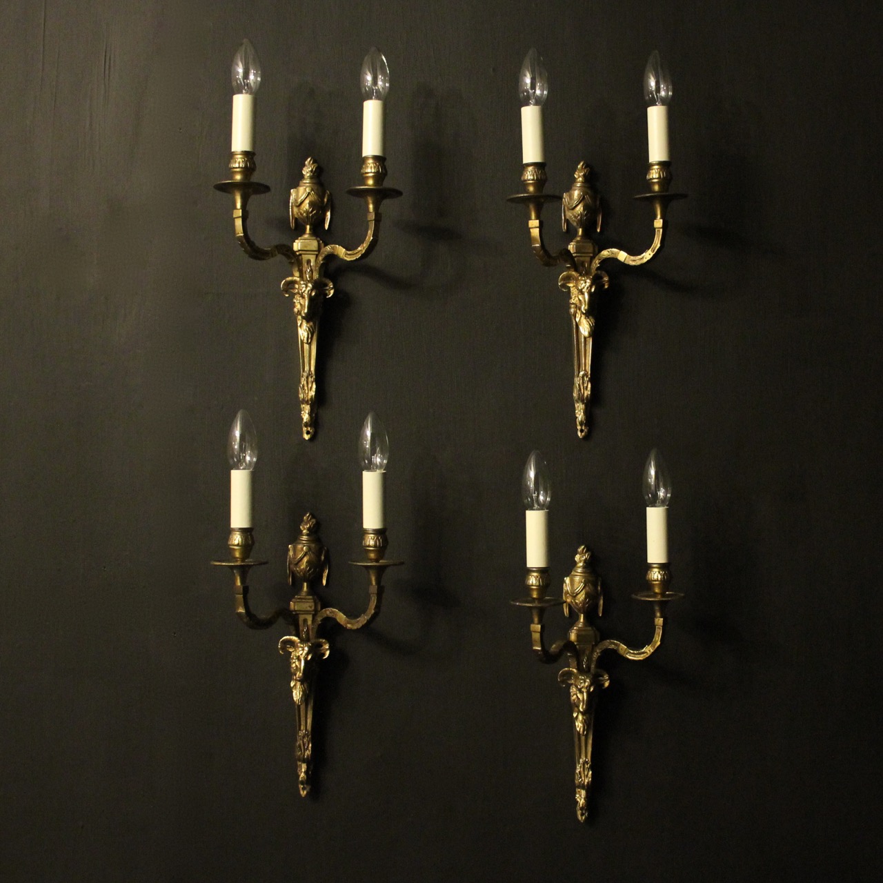 English Set of 4 Bronze Antique Wall Lights c.1900