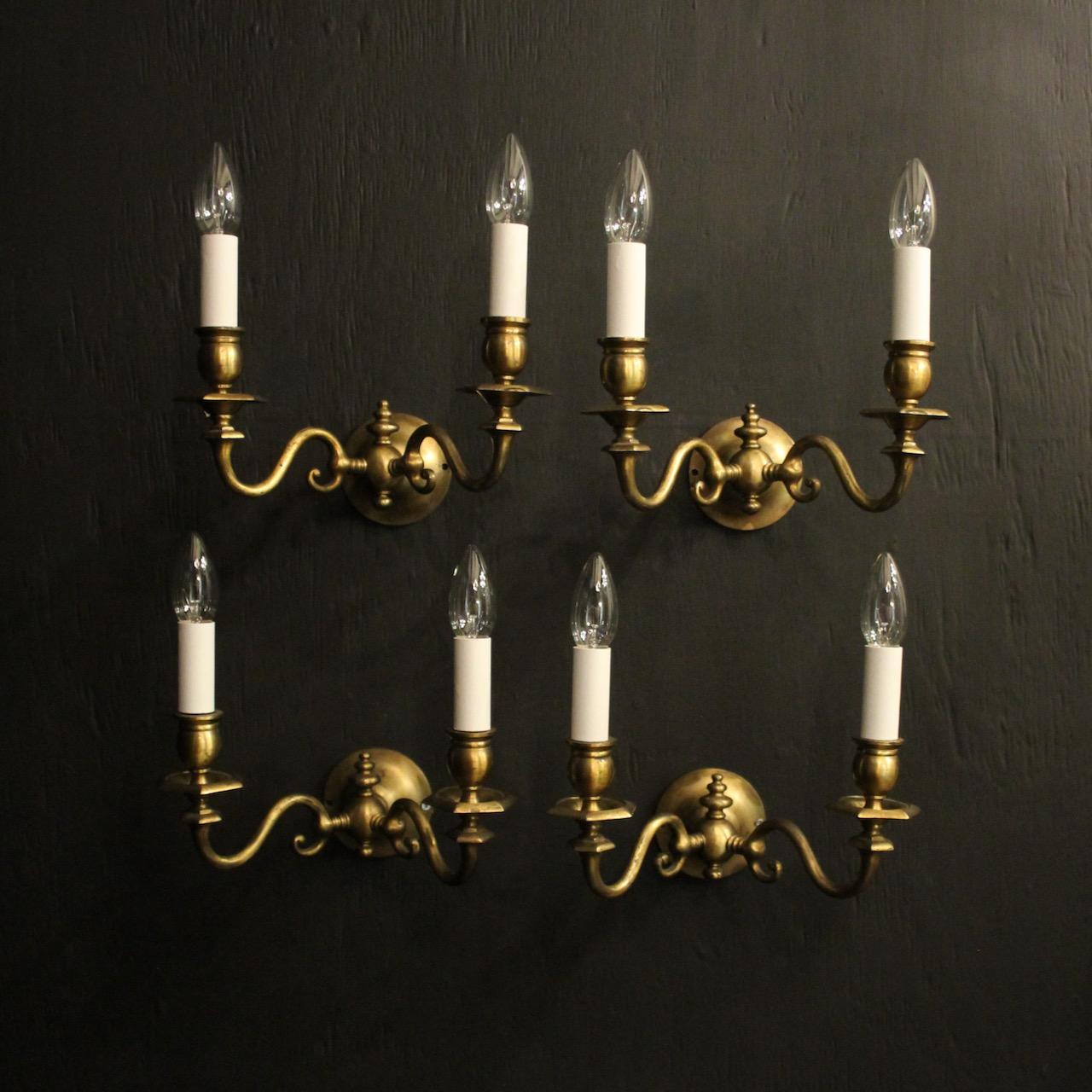 English Set Of 4 Twin Arm Antique Wall Lights