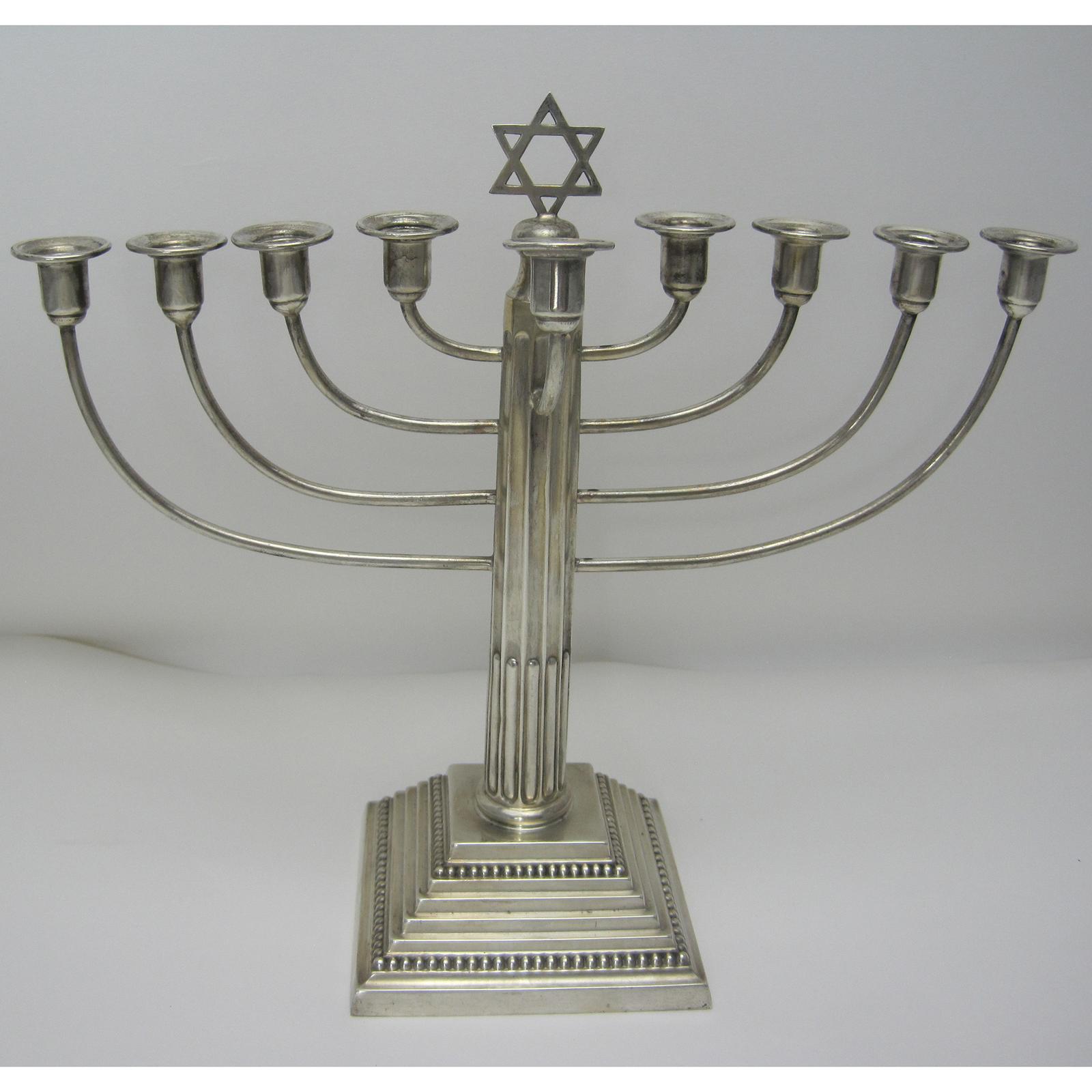 English Silver Hannukah Lamp with Nine Oil Capitals (1 of 5)