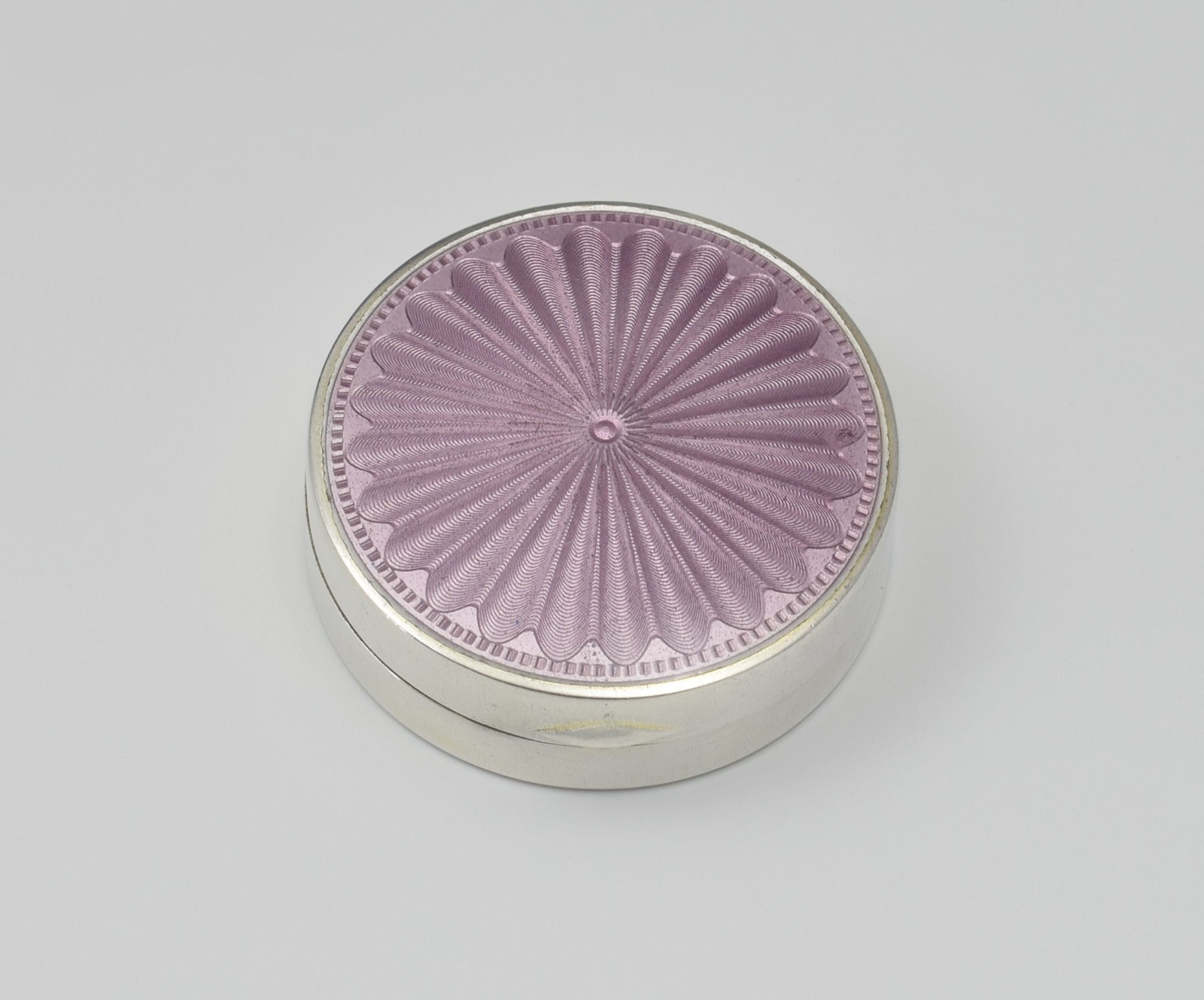 English Silver & Lilac Guilloche Enamel Dq Powder Box