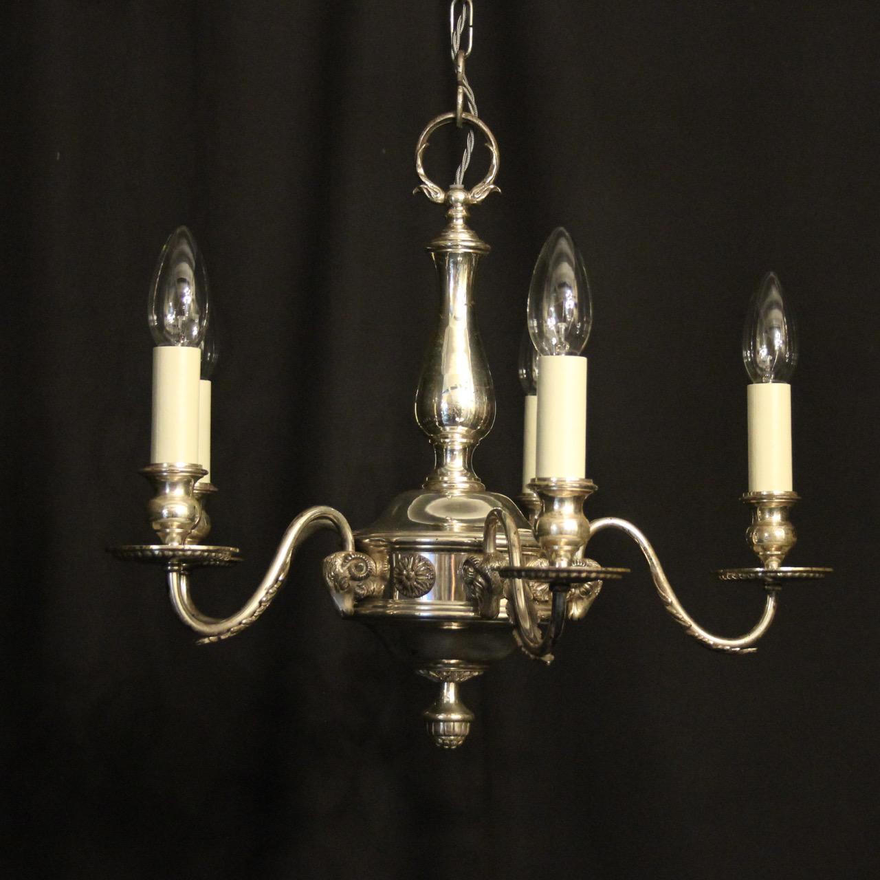 English Silver Plated 5 Light Antique Chandelier