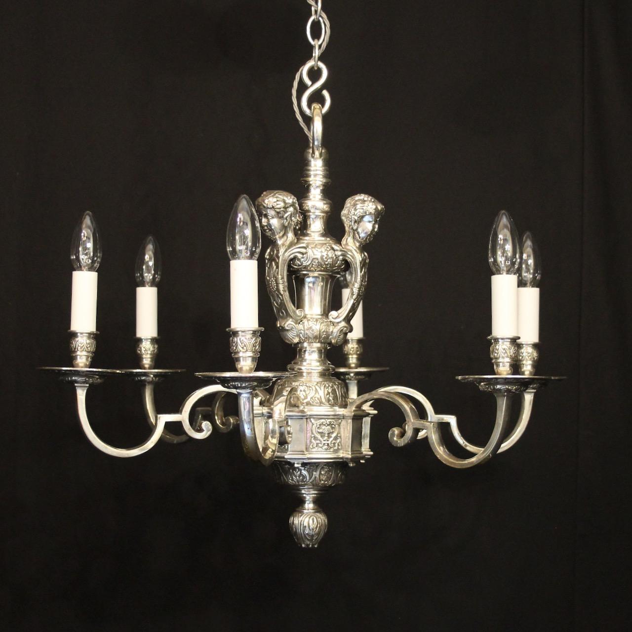 English Silver Plated 6 Light Antique Chandelier