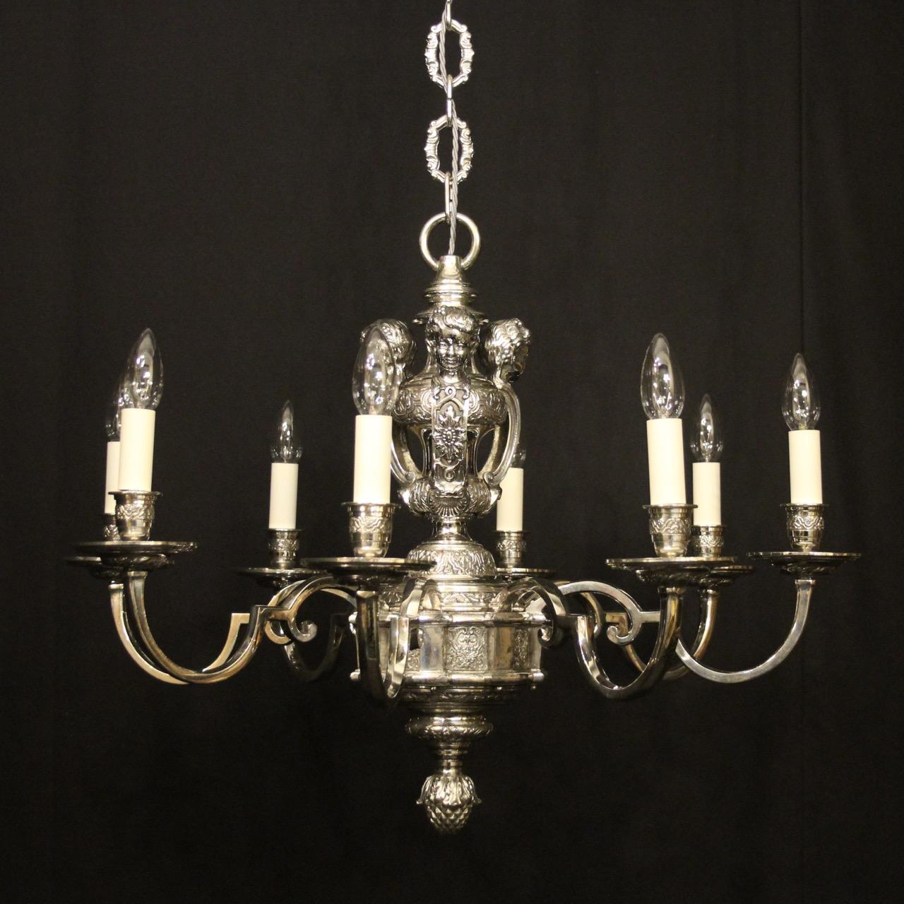 English Silver Plated 8 Light Antique Chandelier