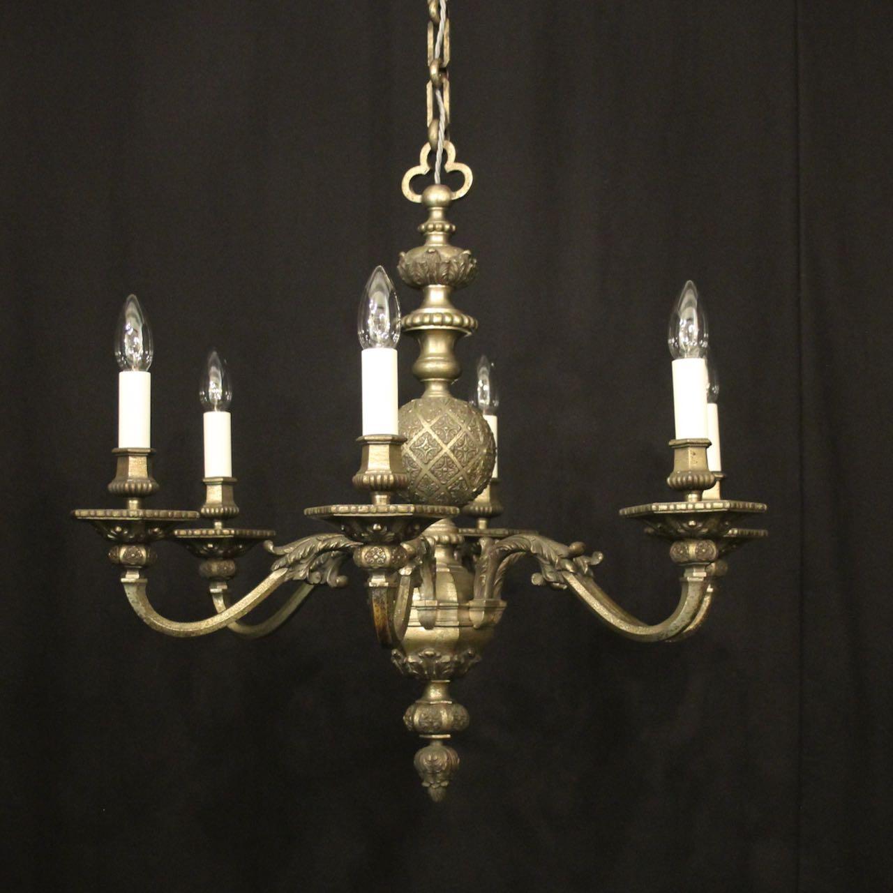 English Silvered Bronze 6 Light Chandelier