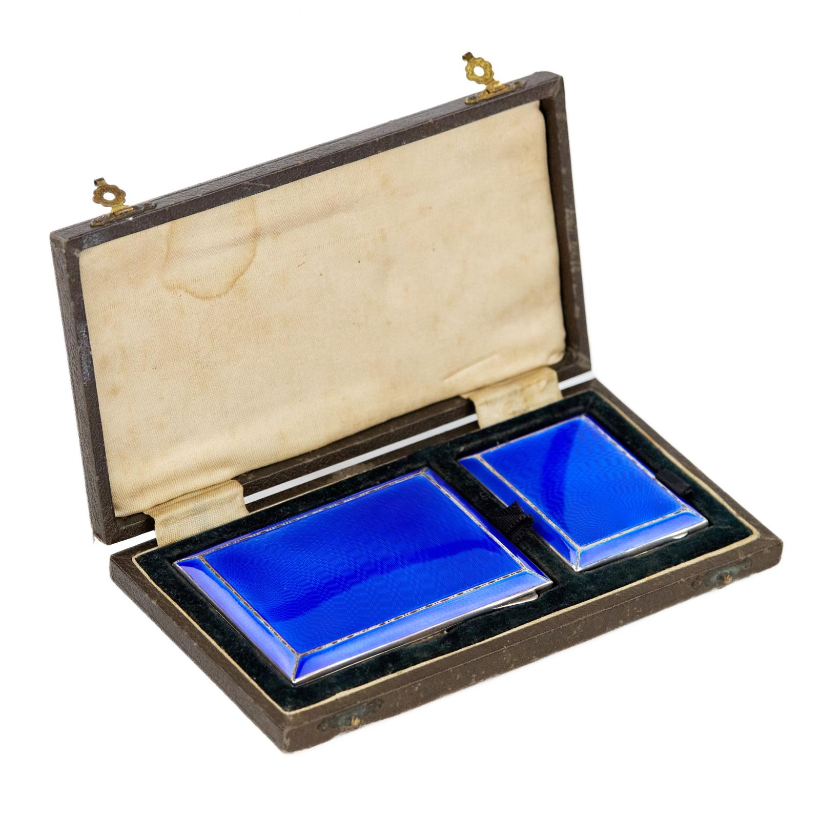 English Smoking Set of Cigarette Case & Matchbox - Made of Silver & Enamel