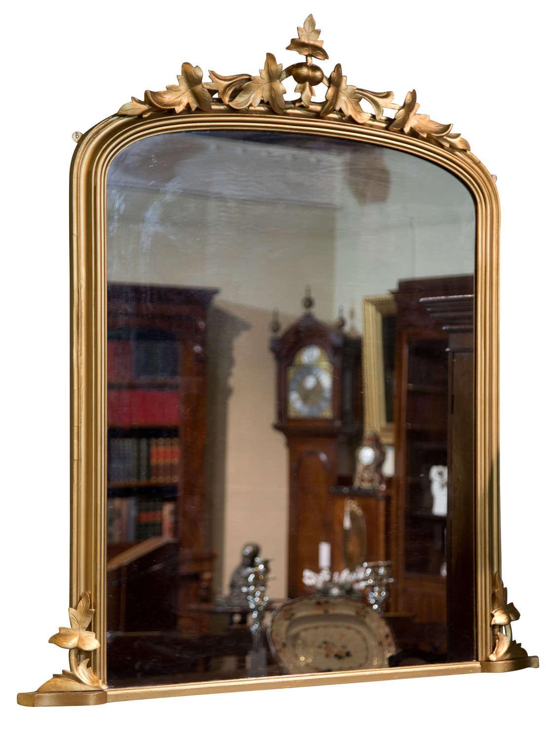 English Victorian Carved & Giltwood Framed Overmantel Mirror C1860