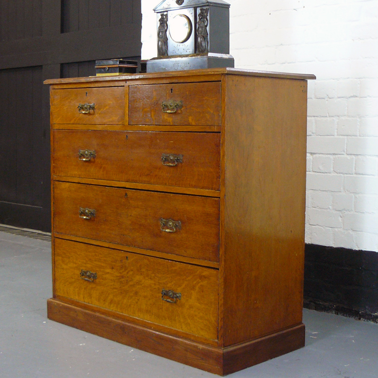 English Victorian Oak Chest of Five Drawers (1 of 1)