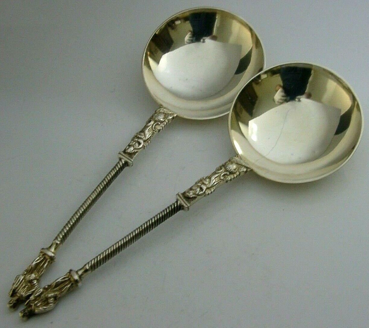 English Victorian Sterling Silver Serving Spoons 1889 Antique Apostles