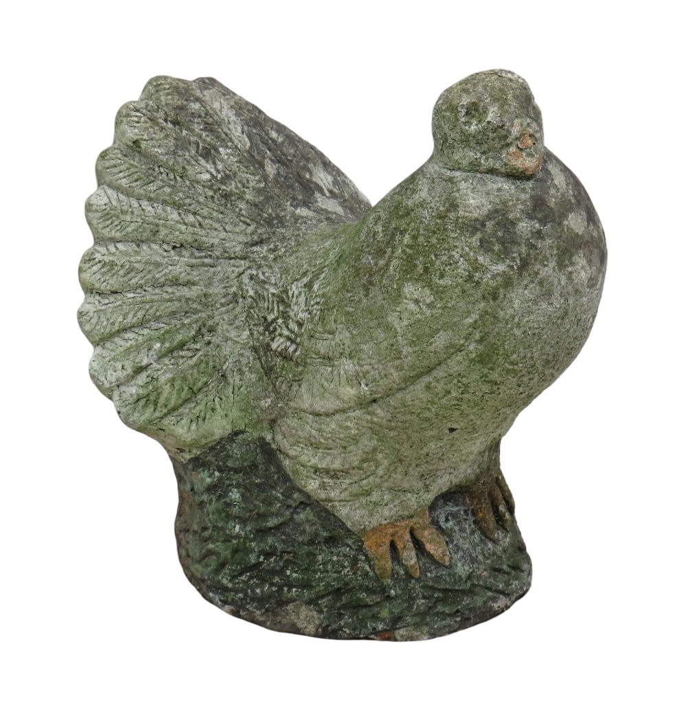 Vintage English decorative statuary reconstituted stone weathered garden dove ornament. More stone animals available.