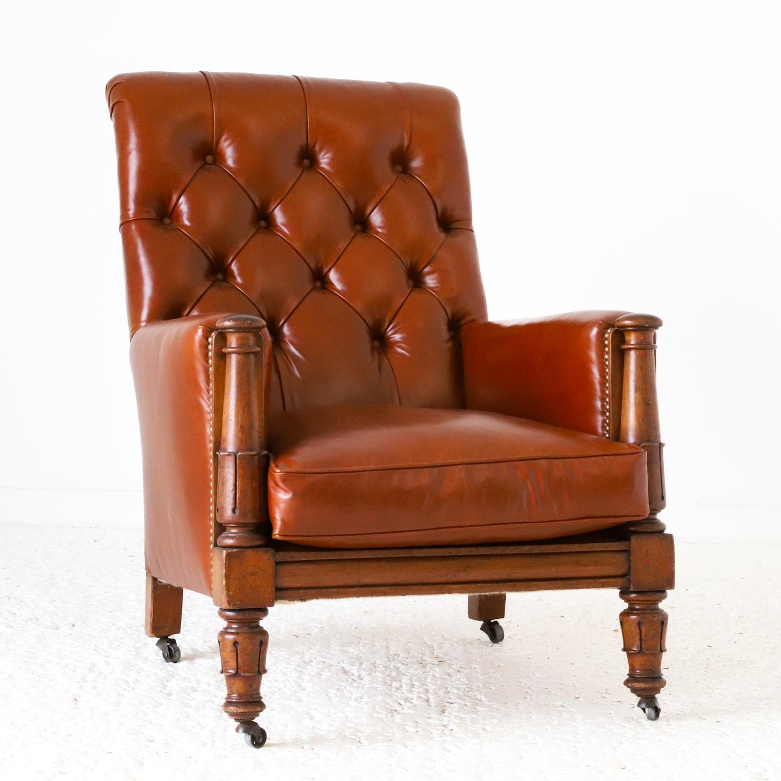 English William IV Library Chair Reupholstered in Tan Leather (1 of 11)