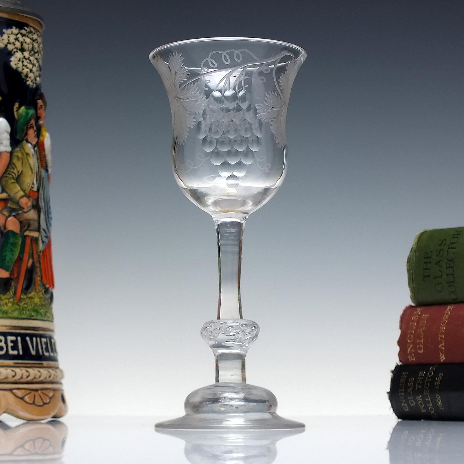 Engraved 18th Century Balustroid Wine Glass c.1730