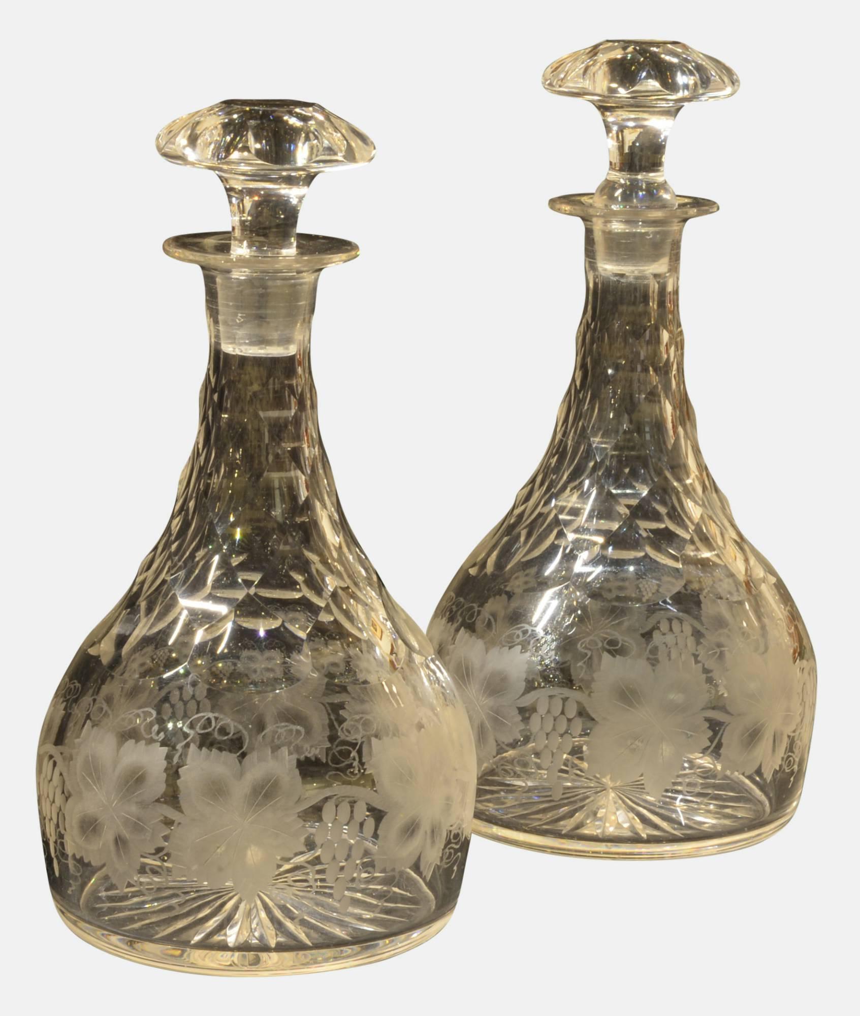 Engraved 19th Century Pair of Decanters