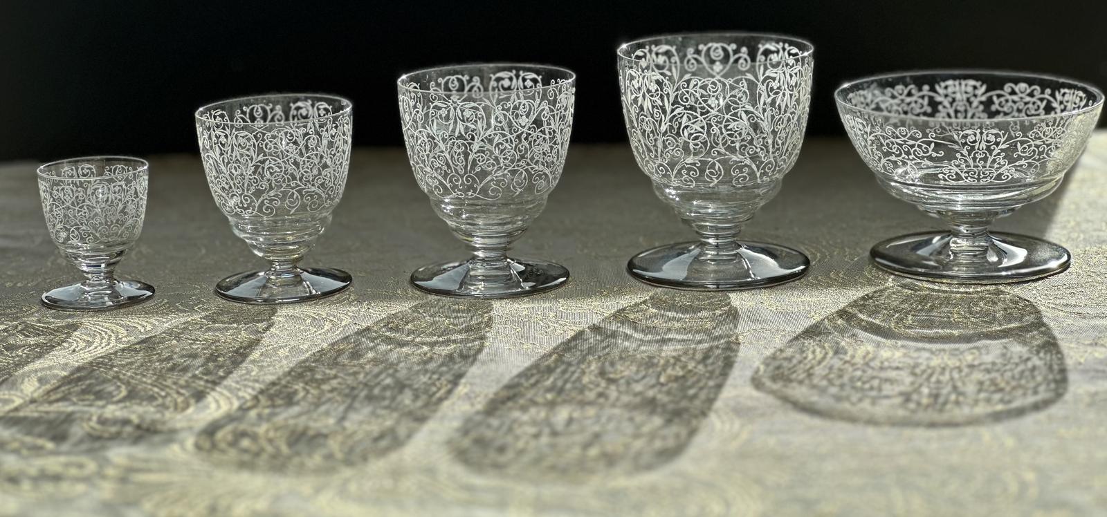 Engraved Ancient Foliage Baccarat Glasses - Set of 41 Glasses