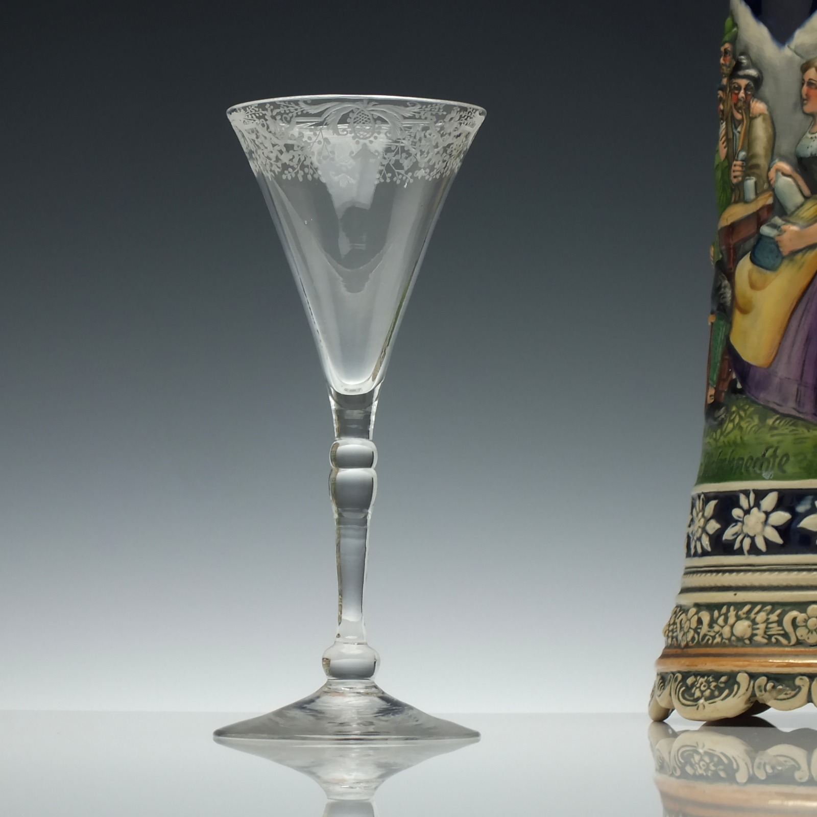 Engraved Georgian Light Baluster Wine Glass c.1745