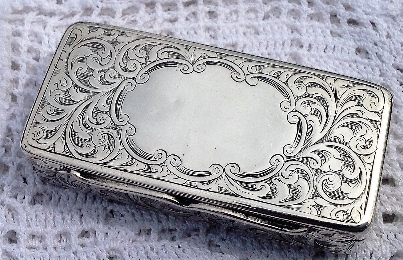 Engraved Silver Snuff Box by Hilliard & Thomason Birmingham 1852