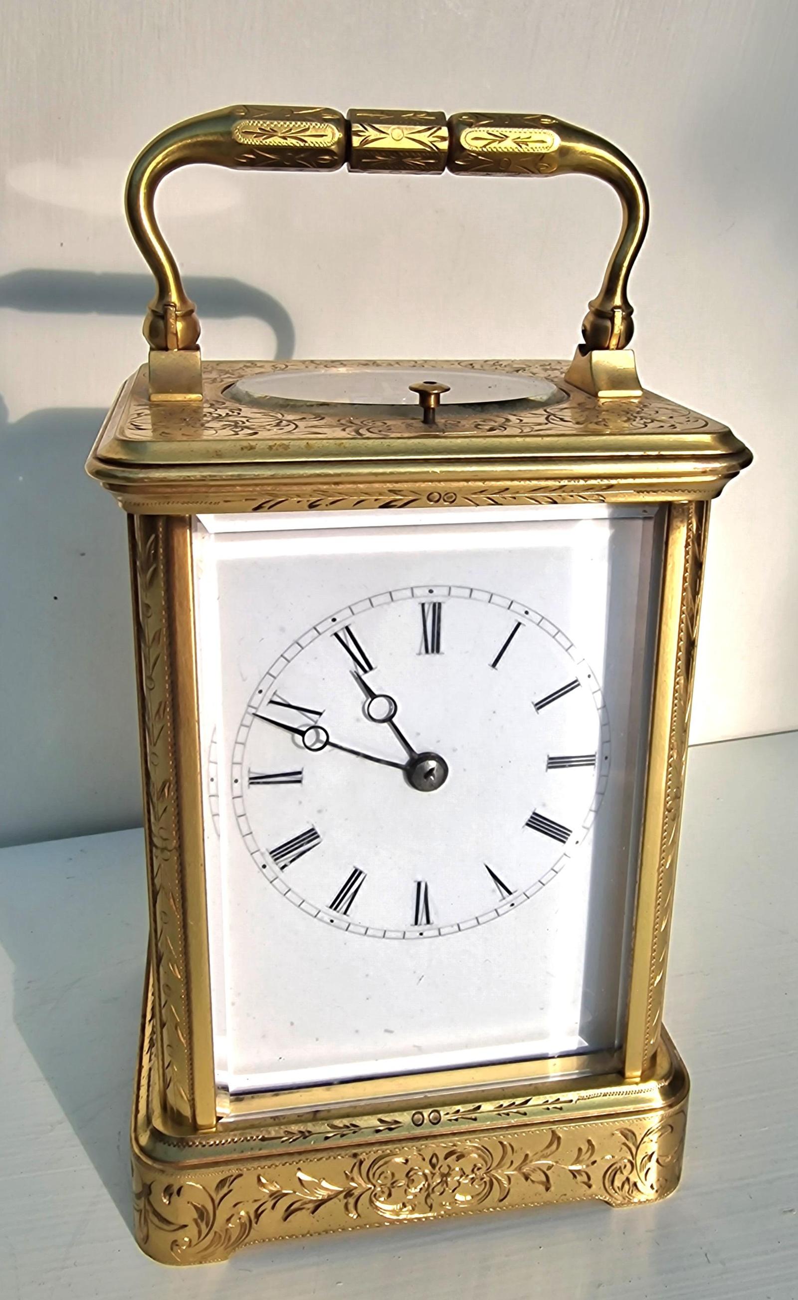 Engraved Strike / Repeat Carriage Clock by Drocourt