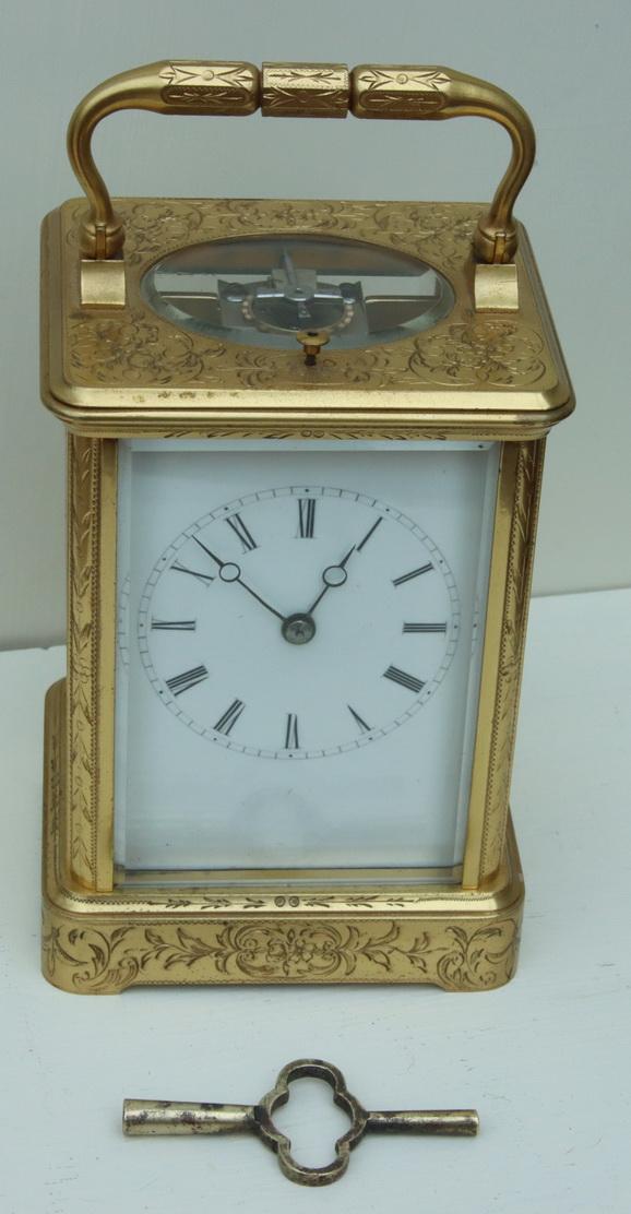 Engraved Striking Carriage Clock by Drocourt