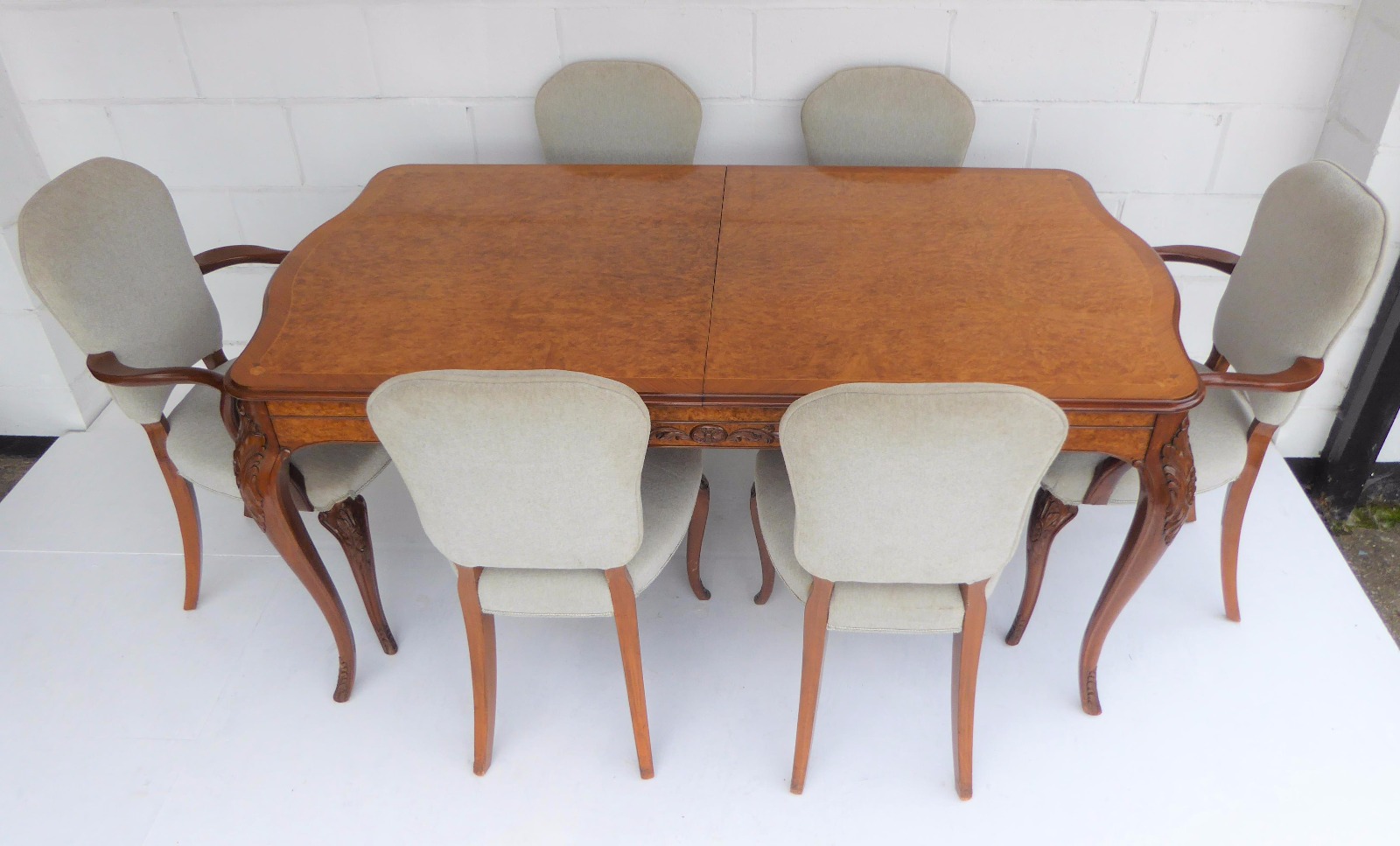 Epstein Inlaid Burr Walnut Table & Six Chairs