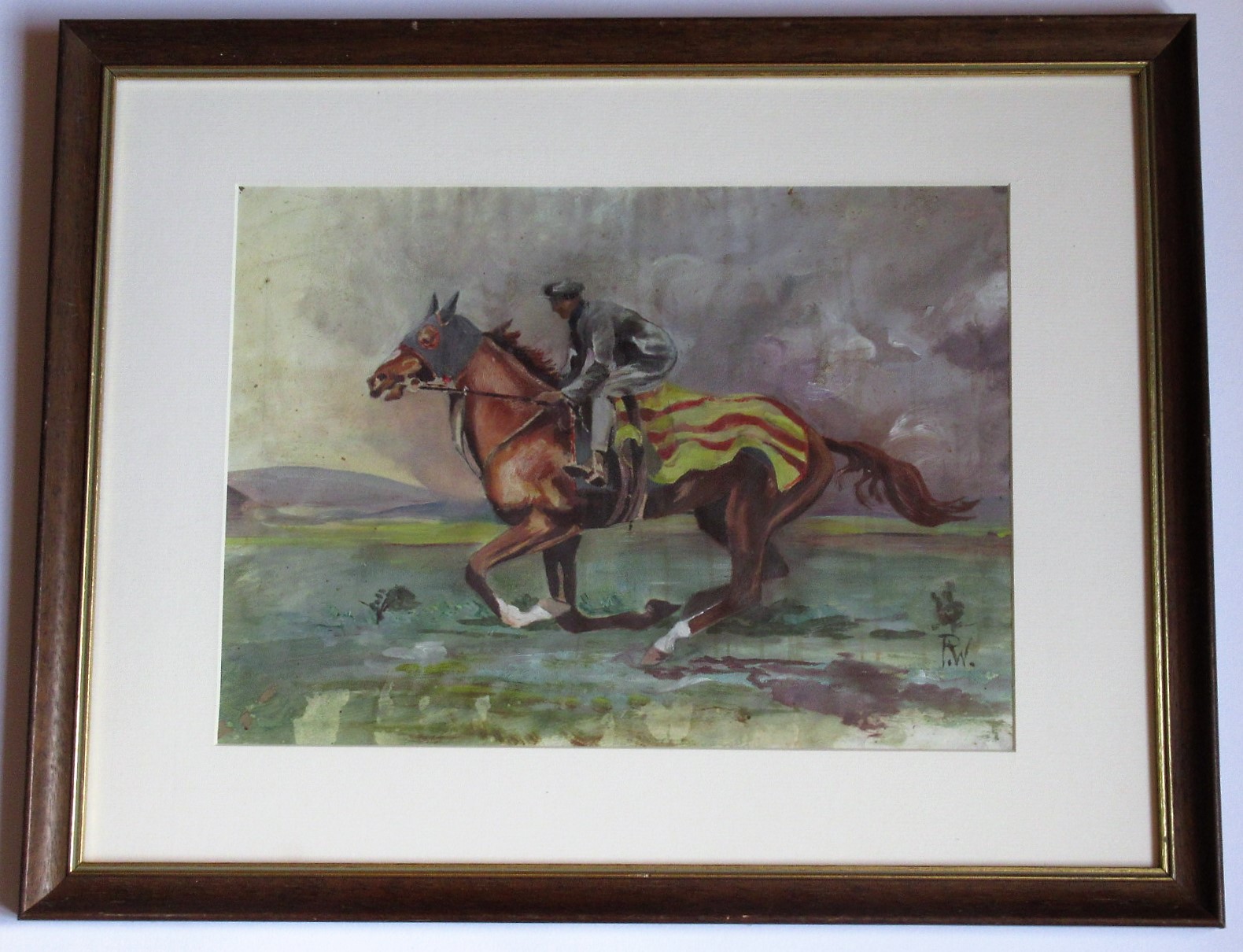 Equestrian Gouache On Paper, Monogram Rw, Horse with Jockey, C1940, Framed