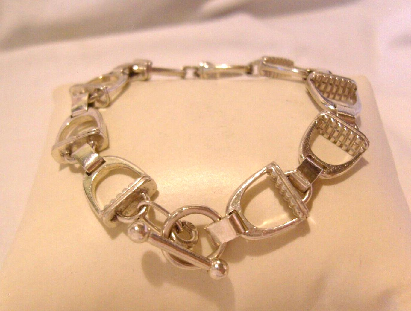 Equestrian Silver Vintage Horse Stirrup Bracelet with T Bar 8"Length 25.4g