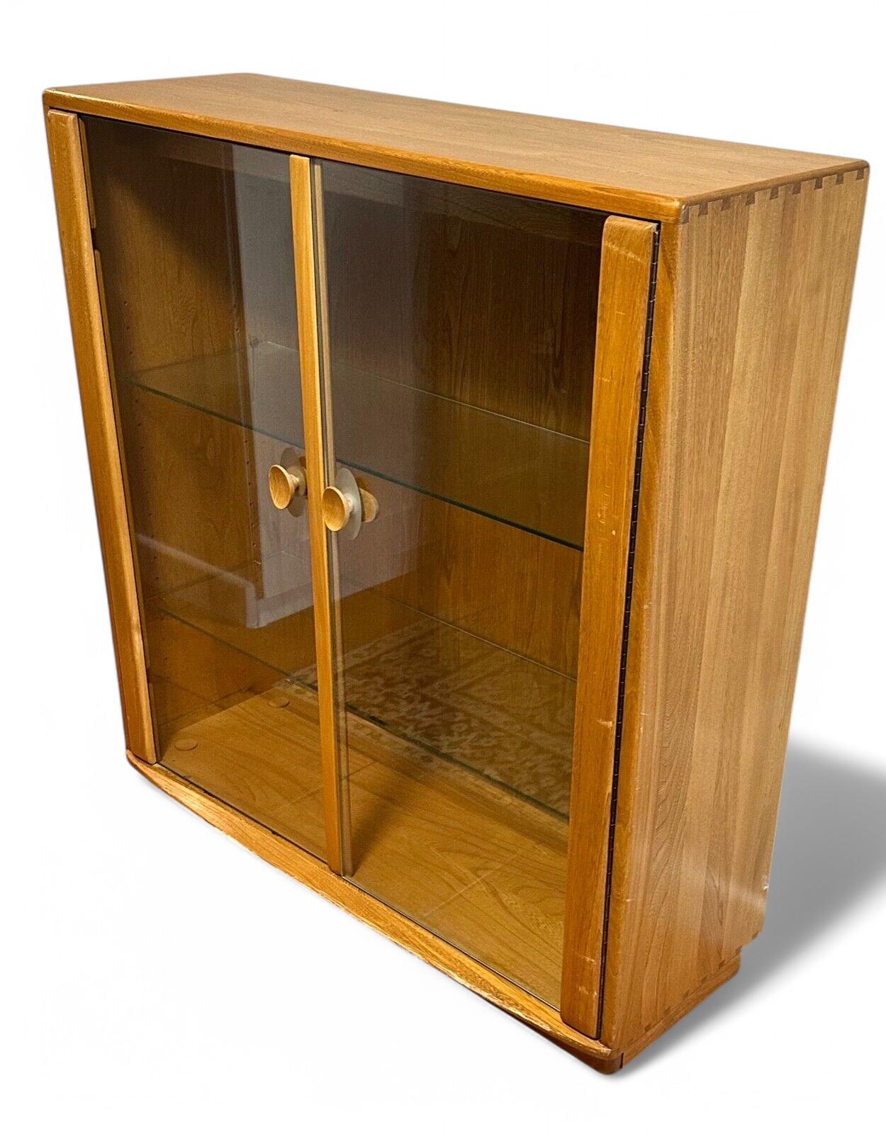 Ercol Elm Glass Door Bookcase Display Cupboard