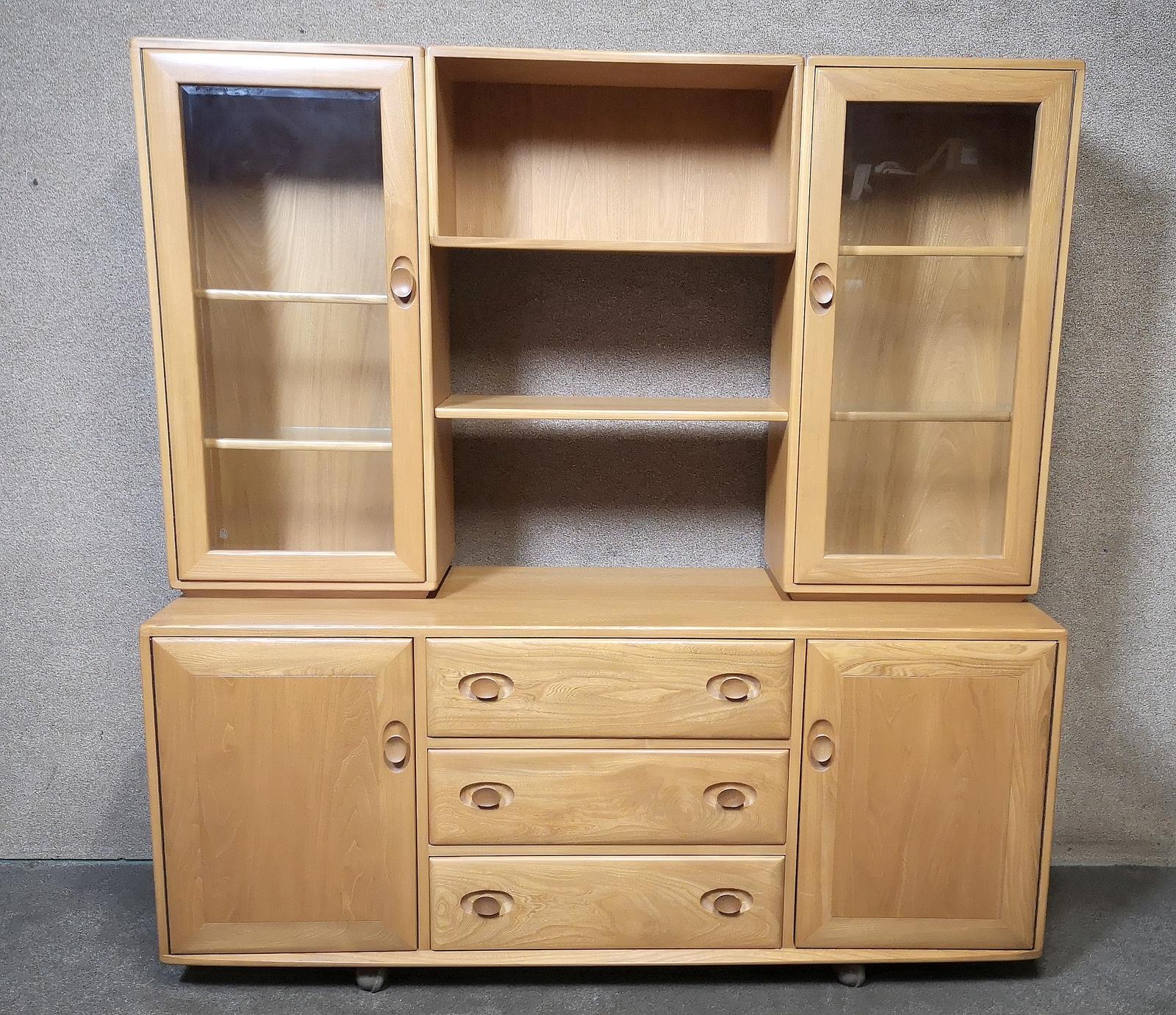 Ercol Windsor Low Sideboard & Display Cabinet in Solid Elm